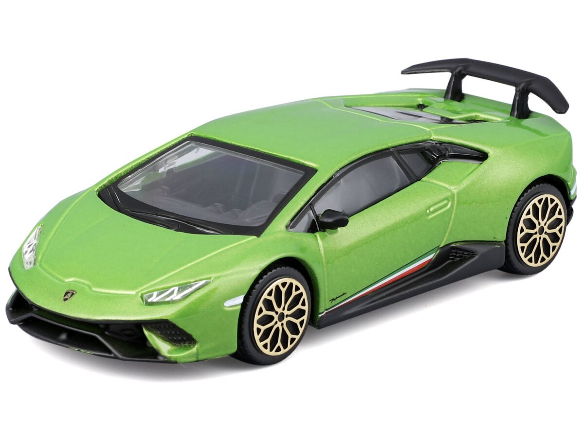 Gedetailleerd schaalmodel van BBURAGO van de Lamborghini Huracan Performante in schaal 1:43 en kleur groen.