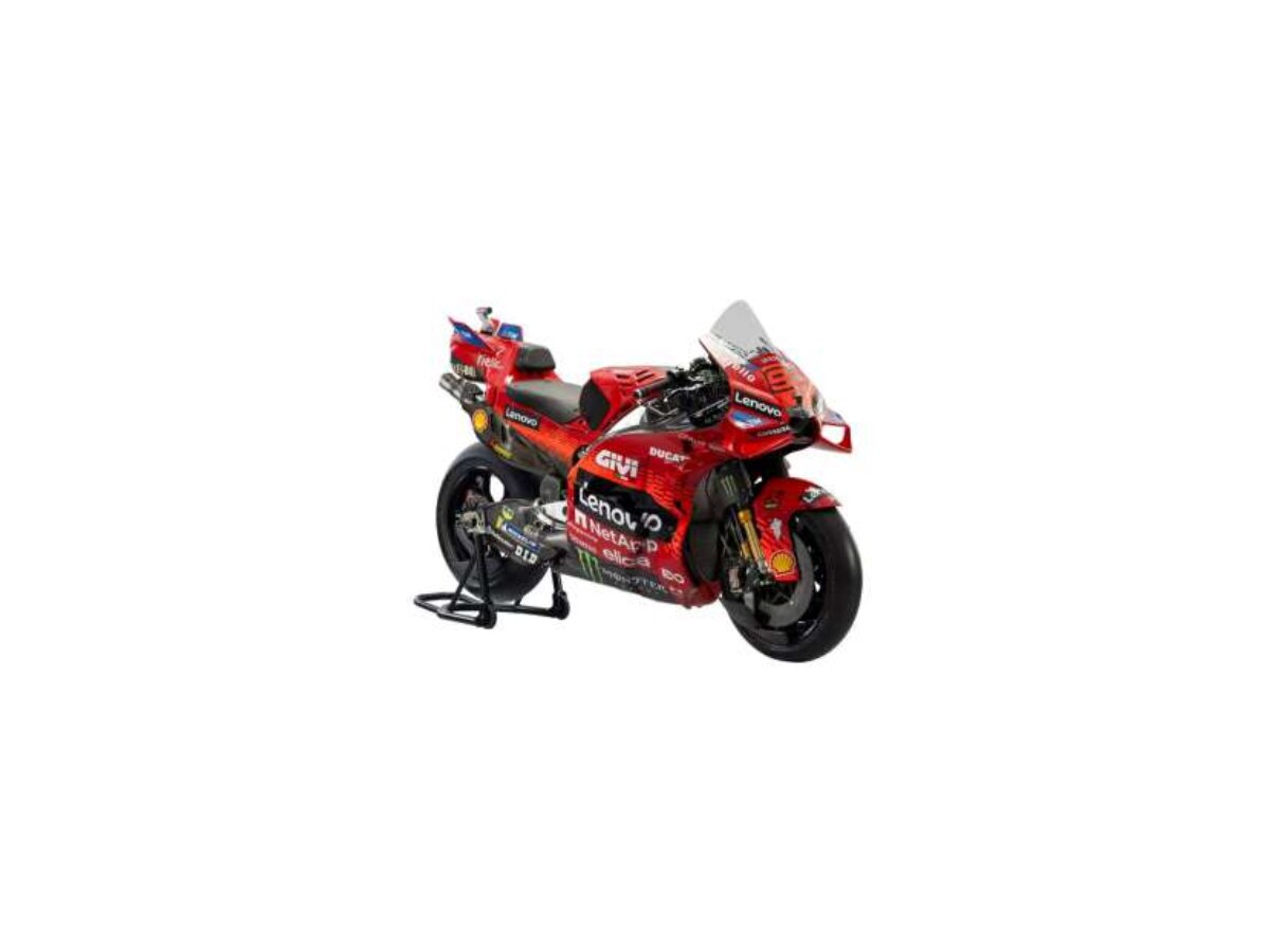 Gedetailleerd schaalmodel van de Ducati Lenovo Team #63 Francesco Bagnaia 2025 in schaal 1:18 en kleur rood.