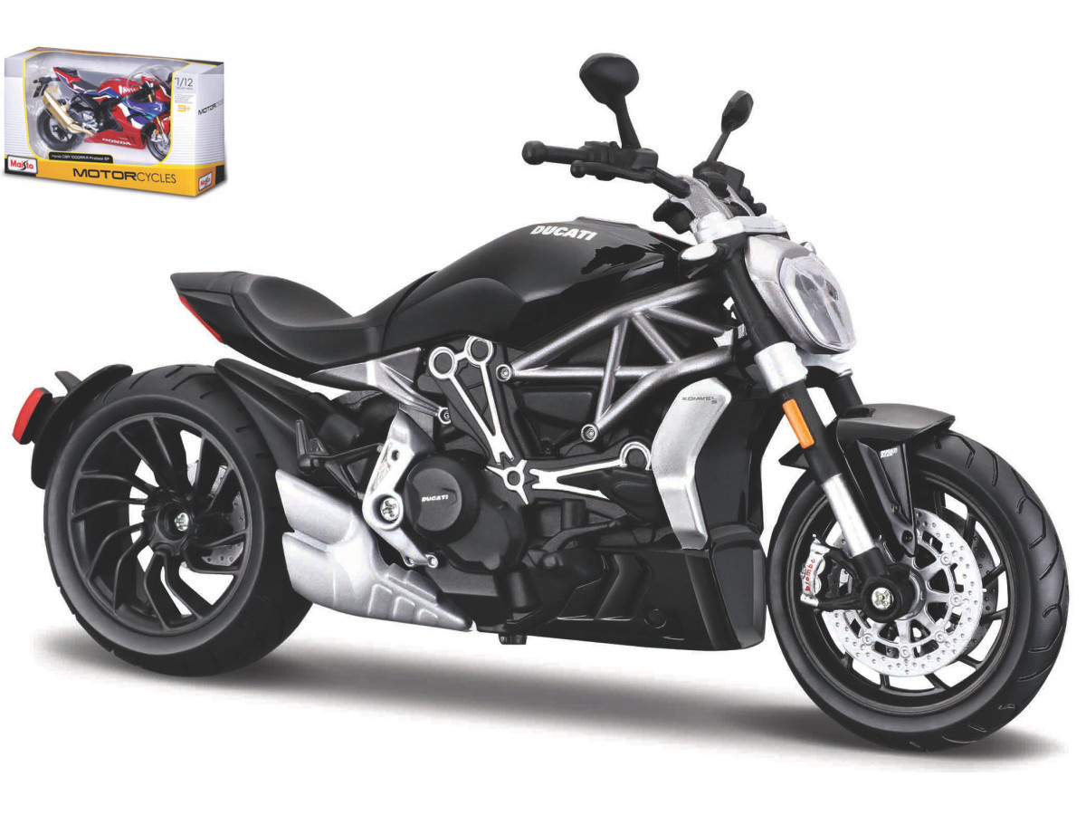 Gedetailleerd schaalmodel van de Ducati X Diavel S in schaal 1:12 en kleur zwart.