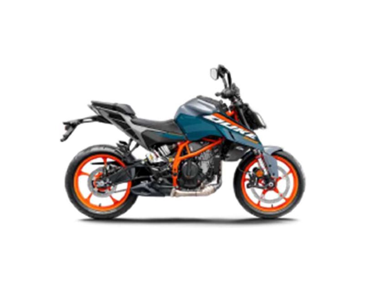 Gedetailleerd schaalmodel van de Ktm 390 Duke in schaal 1:12 en kleur blauw/oranje.