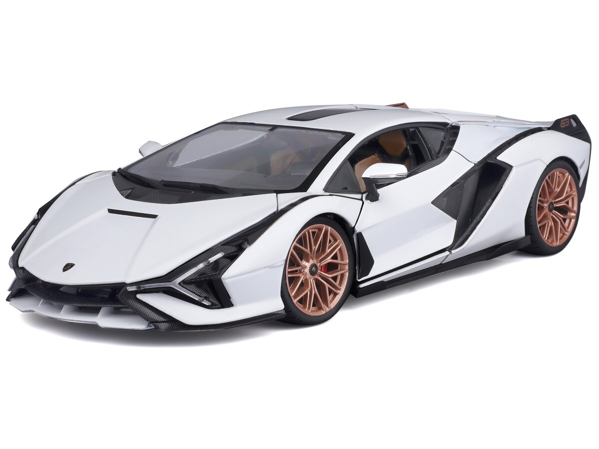 Gedetailleerd schaalmodel van de Lamborghini Sian Fkp 37 2019 in schaal 1:18 en kleur wit/zwart.
