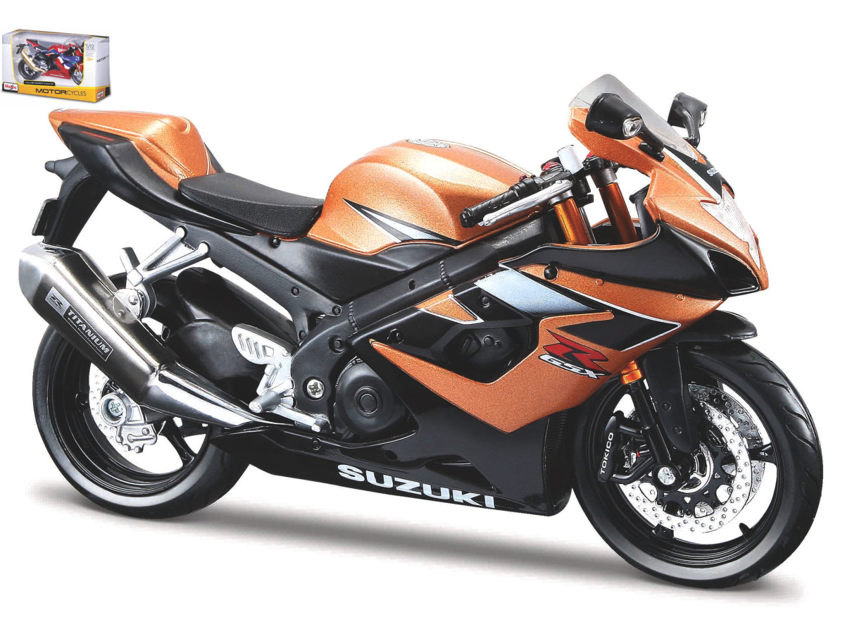 Gedetailleerd schaalmodel van MAISTO van de Suzuki Gsx-r 1000 in schaal 1:12 en kleur goud/zwart.