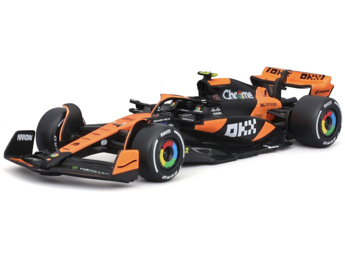 Gedetailleerd schaalmodel van de Mclaren Mcl 38 #4 Lando Norris 2024 in schaal 1:43 en kleur oranje/zwart.