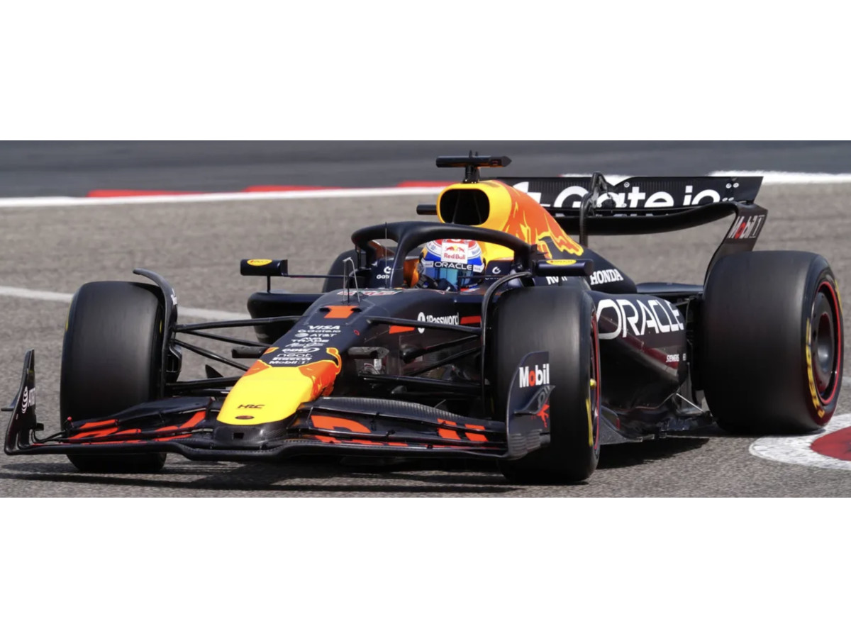 Gedetailleerd schaalmodel van de Red Bull Rb21 #1 Max Verstappen 2025 With Helmet in schaal 1:43 en kleur Donker Blauw/rood/geel.